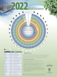 2022 Kaulana Mahina Calendar by Hui Mauliola and Kamehameha Schools Publishing. The other calendar put out by the Prince Kūhiō Hawaiian Civic Club - differs slightly by one day. Not unusual. This is just a guide to kōkua